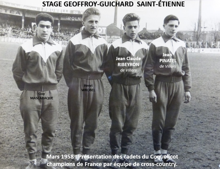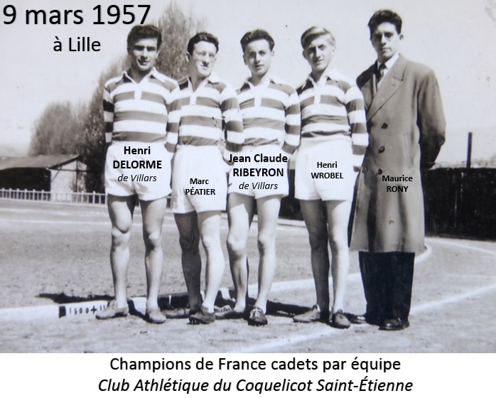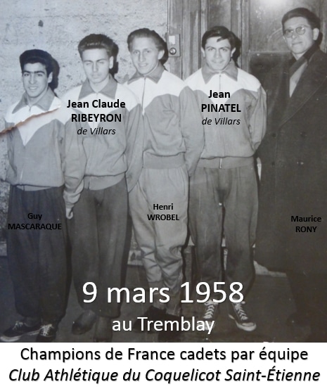 Jean-Claude RIBEYRON (né en 1941, décédé en 2023) : En mars 1957 à Lille, il est champion de France cadet par équipe de cross-country. Performance renouvelée en mars 1958 au Tremblay, avec un titre de champion de France cadet par équipe de cross-country. En 1959 il est vice-champion du Lyonnais et champion par équipe.
