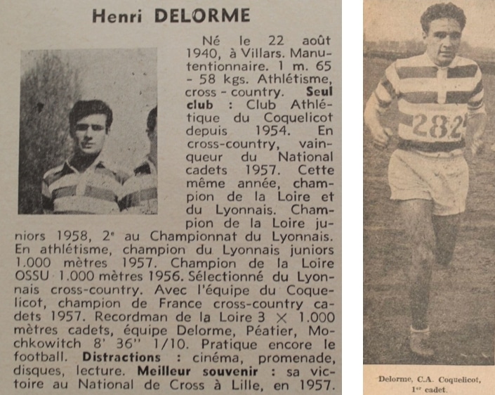 Henri DELORME (né en 1940, décédé en 2016) : champion de la Loire puis du Lyonnais cadet de cross-country en 1956 puis en 1957. Le 9 mars 1957 à Lille, champion de France cadet de cross-country en individuel et par équipe. En 1958 il est champion de la Loire junior de cross-country et champion du Lyonnais sur 1000 mètres. En mars 1958 il participe au championnat de France junior au Tremblay.