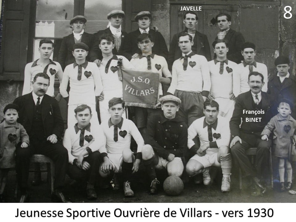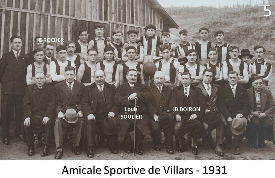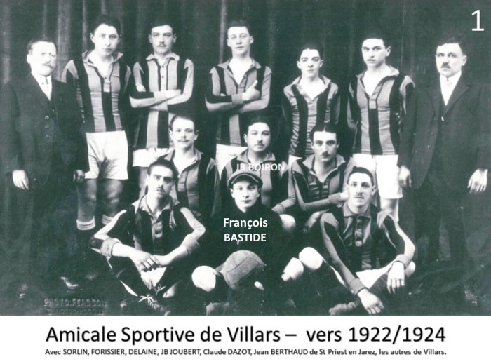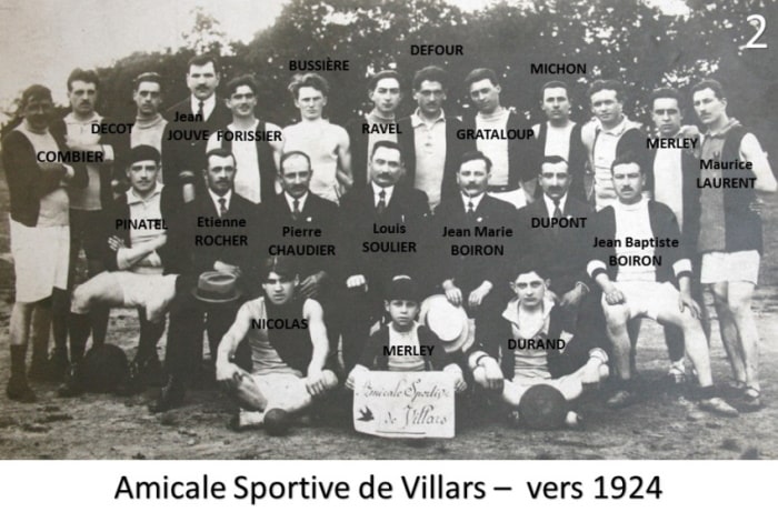 Dans cette première équipe de foot jouent les dénommés Antoine PINATEL (capitaine), Jean Baptiste BOIRON, Jean Baptiste CRESPE, Jean Claude DAZAUD, Jean Marie COMBIER, Jean BERTHAUD, SORLIN, DURON, SAGNOL, FRANÇON, DESAGE et les frères REOCREUX, avec pour partie des anciens Poilus, survivants de la Grande Guerre. A noter que l’effectif de départ est composé de Villardaires mais aussi de joueurs de Saint-Priest-en-Jarez.