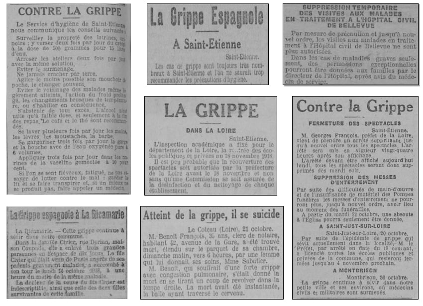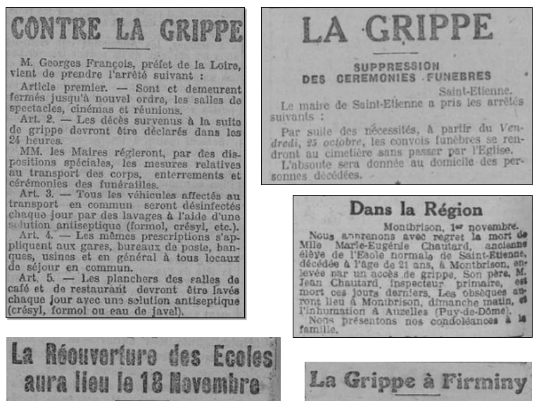 Fermeture des spectacles à Saint-Étienne et suppression des messes d’enterrement. Fermeture des écoles à Saint-Just sur Loire. La grippe continue à sévir à Montbrison.