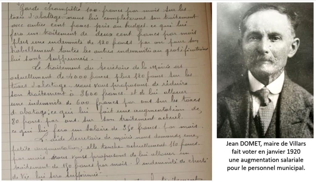 La commune compte alors 3000 habitants. Depuis la Grande-Guerre et la forte inflation qui s’en est suivie, l’augmentation des salaires était devenue une nécessité, même si une indemnité de cherté de la vie avait déjà été mise en place.