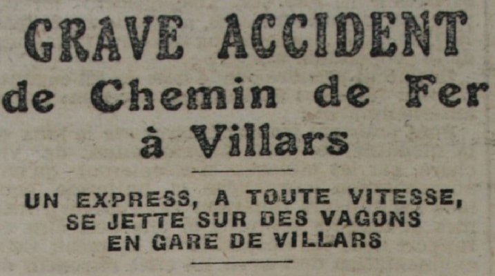Les accidents ont hélas été assez nombreux au début du siècle dernier le long de la voie de chemin de fer que ce soit chutes, suicides ou piétons happés par le train. Le 26 mai 1917 se produisit en gare de Villars un terrible accident de chemin de fer qui fit deux morts et trois blessés. Le train express pour Paris, bondé de militaires permissionnaires, avait quitté Chateaucreux à 22 h 39. Dès le pont du boulevard Jules Janin il roulait à 60 km/h et traversait la gare de la Terrasse à la même allure. Son prochain arrêt n’était prévu qu’à Montrond. La déclivité de la voie à partir du pont de Michard accentuait sa vitesse qui atteignait 80 km/h en gare de Villars.