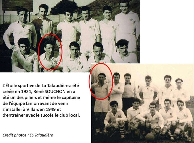 En 1924 le club de foot de l’Étoile sportive de La Talaudière voit le jour. De nombreux mineurs viennent ici taper dans le ballon avec un certain succès. René Souchon est de ceux-là et le club gravit progressivement les échelons. Le talent de René Souchon lui vaut d’être remarqué et il va ainsi effectuer un passage à l’ASSE où il est sollicité pour signer à Montferrand.