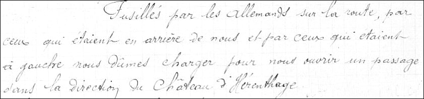 C’est là que tombera André MOREL mort au combat le 11 novembre 1914, lors d’une violente offensive allemande, précisément dans le parc du château d’Harenthage (en ruines) près de Veldhoek en Belgique.