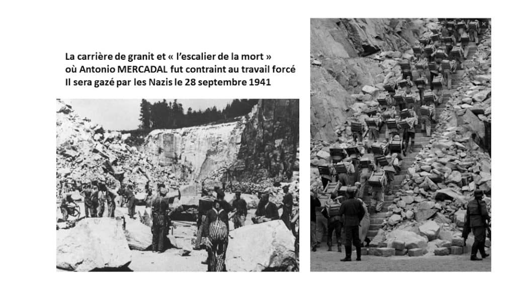 Il est ensuite transféré le 27 janvier 1941 au sinistre camp de Mathausen puis le 15 août 1941 il est affecté au camp de Gusen en Autriche. Sur les rives du Danube, les Nazis y exploitent les carrières de granit, grâce notamment à l’envoi dès 1940 de milliers de Républicains espagnols qui vont construire ici la forteresse. Là se trouve le tristement célèbre « escalier de la mort ».