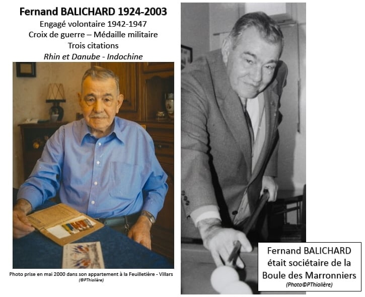 Fernand Balichard, engagé volontaire d’avril 1942 à avril 1947 a été cité trois fois à l’ordre de son régiment. Il a été décoré de la médaille militaire, de la médaille des territoires d’Outre-mer et il est titulaire de la Croix de Guerre. Il était également vice-président départemental de l’association « Rhin et Danube ».