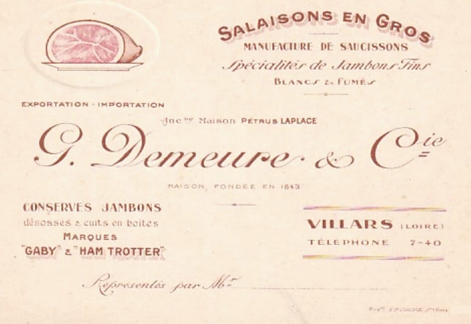 En 1909, Laplace qui a alors 65 ans et entend profiter d’une heureuse retraite revend son affaire à Dumazeau, charcutier stéphanois bien établi. Après la Grande-Guerre, l’entreprise deviendra Demeure et Cie puis sera revendue à Faure et Chalandon puis à Faurand et Noiret en 1928.