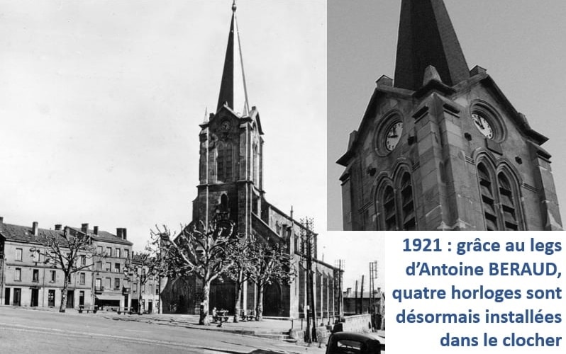 La commission des bâtiments qu’anime Louis Soulier, alors adjoint du maire Jean Domet, vient de se livrer à une inspection détaillée des lieux. Il s’agit d’abord de donner suite aux dernières volontés d’Antoine Beraud, décédé en 1917 et qui dans son legs à la commune demande que les sommes perçues servent entre autres à acheter une horloge à deux cadrans destinée à remplacer celle unique du clocher et d’y ajouter un éclairage par lampes électriques.