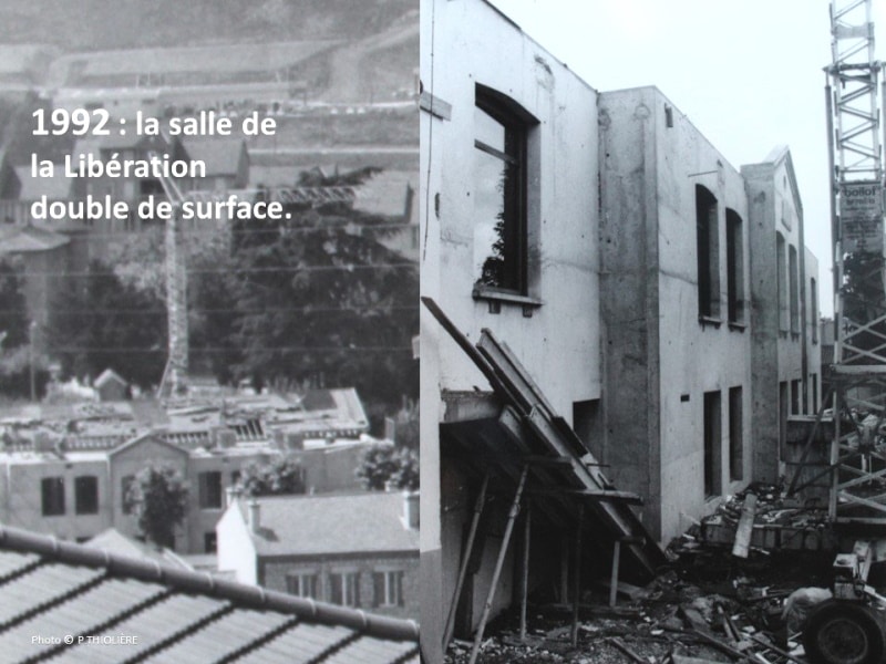 Le chantier le plus important a débuté au printemps 1992, avec la décision par la Municipalité conduite par Hubert POUQUET de marier le neuf et l’ancien en doublant de surface le bâtiment (de 220 à plus de 400 mètres carrés). La salle était alors deux fois plus petite qu’aujourd’hui (la simple travée avec sa petite scène en bout) et avec 200 personnes elle affichait complet (la salle peut en accueillir le double aujourd’hui). Sept mois de travaux ont été nécessaires pour mener à bien ces travaux pour 4 millions de francs.