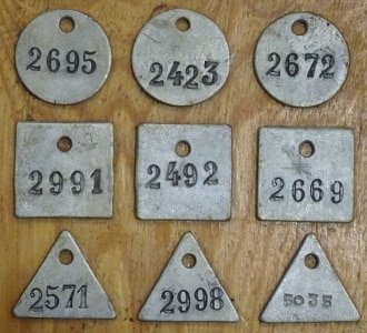 Avant de descendre au fond, chaque mineur récupérait sa lampe contre remise d’un jeton qui portait le même numéro que la lampe. Ce jeton servait ainsi de pointage, indiquant la présence du mineur à son poste de travail et permettant de savoir sur quel chantier il se trouvait. Il permettait aussi de savoir s’il était bien remonté après sa journée de travail.