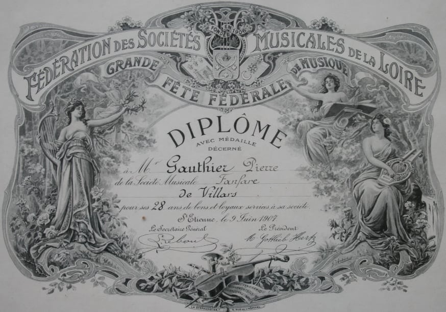 À Villars Pierre GAUTHIER avait été le fondateur vers 1877 de la fanfare et son généreux président pendant 28 ans, finançant notamment chaque année une sortie pour les musiciens de Villars.