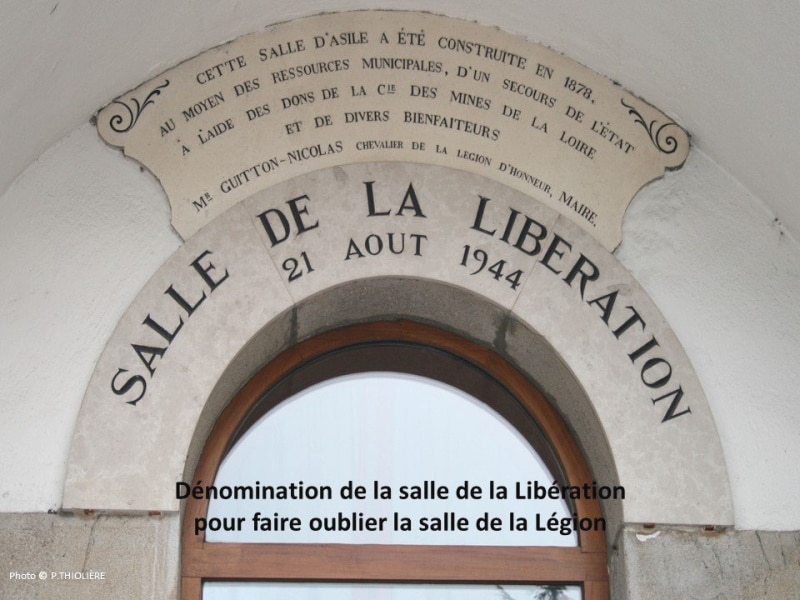Les années sombres de la deuxième guerre mondiale et de l’Occupation ont aussi marqué l’histoire du bâtiment. Le 22 juin 1941 est inauguré dans l’ex salle d’asile le foyer de la Légion Française des Combattants en présence du Préfet. Le portrait du Maréchal Pétain y trône en bonne place. Cette trace trop marquée de la collaboration sera effacée par le Comité de Libération (Municipalité de Henri FAURE) qui, lors de sa première délibération du 2 septembre 1944, décide « que l’ancienne salle de la Légion s’appellera désormais salle de la Libération du 21 août 1944 ». C’est le nom qu’a gardé la salle aujourd’hui et qui est gravé sur son fronton.